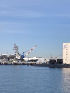 港には潜水艦や軍艦みたいのが寄港しています。カッコイイような怖いような・・・・。